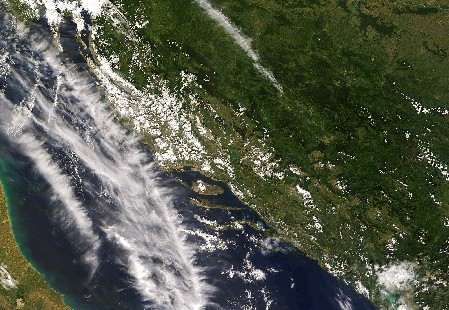 A felhősávok keleti oldalán jól látható Braè és Hvar szigete, illetve a híresen szép Korèula-félsziget. Érdemes egy pillantást vetnünk a tenger másik partjára: az olasz partokon a tengert világoskék és türkiz színekre festi a folyók hordaléka, ami lassú áramlással dél felé sodródik a part mentén.