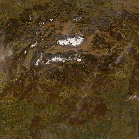 A felvételen a fenyvesek sötétzöld, a lombos erdők még sötétbarna színben látszanak. Az alföldek szántóföldjein már zöldül a vetés. A Tátra körüli magasabb fennsíkok (délen Liptó, keleten Szepes, illetve északon a lengyel felföld) és a völgyek hűvösebb klímáját épp a zöld szín hiánya, és a világosbarna árnyalat dominanciája jelzi.