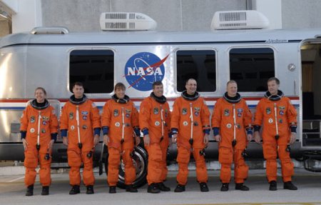 Az STS-126 személyzete balról jobbra: Sandra Magnus (eddig 1 űrrepülés), Shane Kimbrough (újonc), Heidemarie Stefanyshyn-Piper (1), Steven Bowen (újonc), Donald Pettit (1), Eric Boe (pilóta; újonc) és Chris Ferguson (parancsnok, 1 űrrepülés). (Kép: NASA / K. Shiflett)