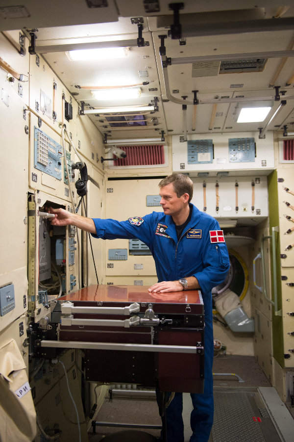 Andreas Mogensen a Nemzetközi Űrállomás orosz moduljának makettjében gyakorolja a világűrben végrehajtandó feladatait. (Kép: ESA / S. Corvaja) Kapcsolódó cikkek: Kapcsolódó linkek: