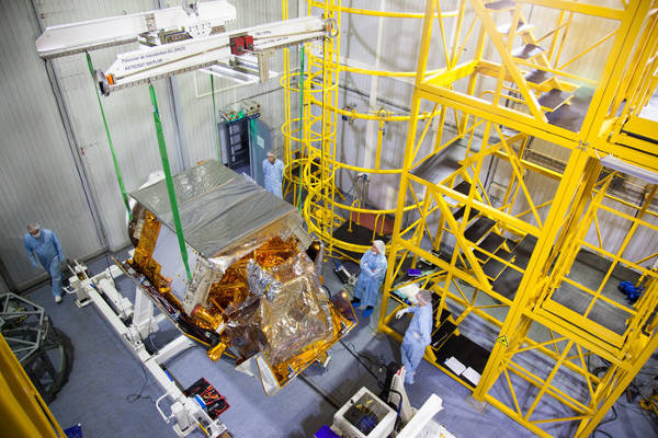 A Sentinel–5P műholdat Pleszeckben felkészítik az október 13-i startra. (Kép: ESA)