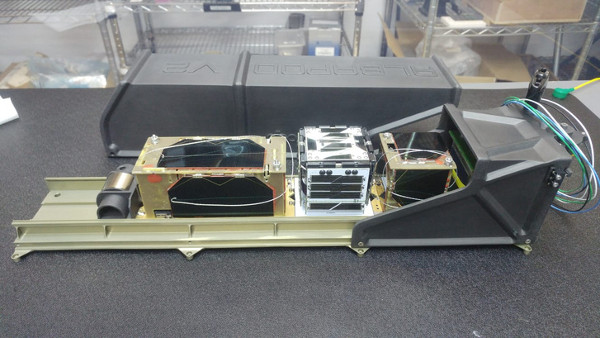 A 182 g tömegű SMOG-P (jobbra) és a 333 g tömegű ATL-1 (balra) a start előtt. A SMOG-P lett a világ eddigi legkisebb működő műholdja. (Kép: Alba Orbital)