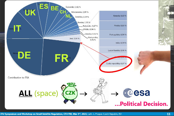 Egy cseh szakember, J. Laifr (SkyFox Labs) véleménye az ország ESA-tagságának nyolcadik évében: az ESA-tagság mellett, azzal párhuzamosan a nemzeti űripar fejlesztésére is szükség van. (Forrás itt)
