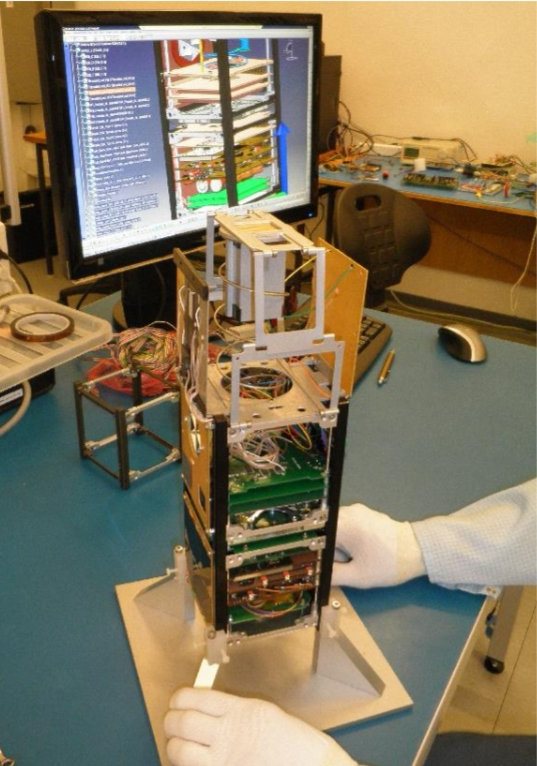Az akkor még CzechTechSat néven futó kockaműhold a Prágai Műszaki Egyetem pikoműhold projektjének laboratóriumában. (Kép: Matej Slavik, Hospodarske Noviny, http://czechtechsat.cz)