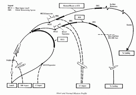 Az RTLS, ATO, és AOA megszakítási módok, összevetve a normál indítás fázisaival (Forrás: NASA). Az ábra nagyobb felbontásban letölthető (linket lásd cikkünk végén.)
