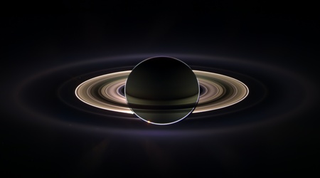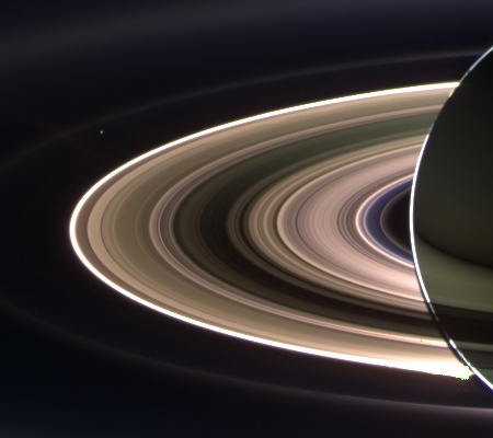 2006. szeptember 15-én a Szaturnusz körül keringő Cassini-űrszonda a bolygó árnyékába került. A különleges nézőpontból készült felvétel valójában egy mozaikkép, a széleslátószögű kamera 165 egyedi felvételéből állították össze. Érdekessége nem csak a gyűrűrendszer lélegzetállító képe. A felvételen kis fényes pontként saját bolygónk, a Föld is feltűnik, amint az a lenti nagyításon jól látható. (Képek: NASA/JPL/Space Science Institute)