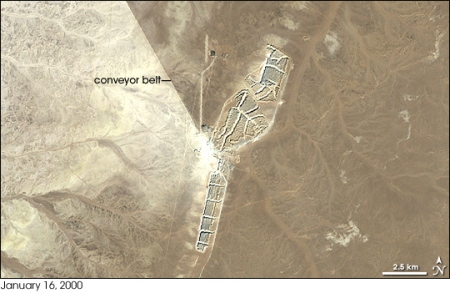 A rendkívül száraz éghajlatú vidék kevés természeti kincsének egyike a foszfát. Bányászata űrfelvételeken is jól látható nyomokat hagy.