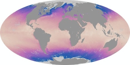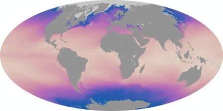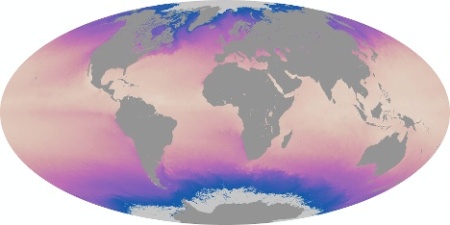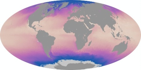 Az itt példaképp bemutatott térképeket a NASA Aqua távérzékelő mesterséges holdjának MODIS műszerével szerzett adatokból készítették. A műhold valójában a vízfelszín felső milliméterének hőmérsékletét határozza meg. A leghidegebb (kb. 2°C-os) vizeket sötétkék, a legmelegebbeket (45°C) sárgás-rózsaszín jelöli. A kontinensek területe, illetve a befagyott sarkvidéki tengerek szürke színűek, mivel innen nem származik mérési adat.