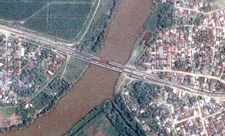 A megsérült híd műholdfelvételen (NASA EO)