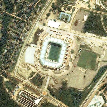 Ugyanezt a stadiont, majd sorban a világbajnokság mérkőzéseinek otthont adó másik kilencet is, nagyobb felbontású űrfelvételeken is bemutatjuk. Ezeket a képeket, amelyeket a francia Spot Image forgalmaz, a koreai Kompsat-2 földmegfigyelő műholddal készítették. Nagyobb felbontásban letölthetők a például a Francia Űrügynökségnek (CNES) a lap alján megadott