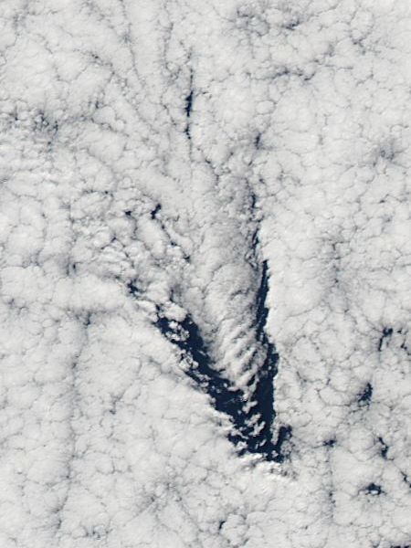 A képnek az Alejandro Selkirk-sziget környékét ábrázoló kinagyított részletén egy viszonylag egyszerű forma látható: a környékbeli felhőtakaró mintázata lényegében megszakad, majd a szigettől északra, valamivel távolabb újra helyreáll.