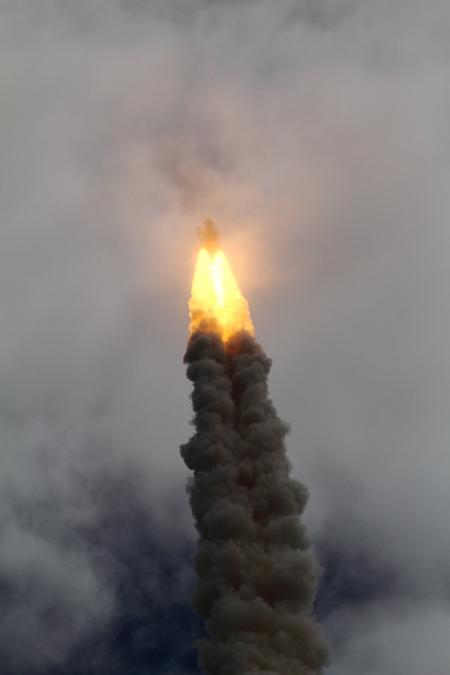 A következő két felvételen az Atlantis elhagyja az indítóállást, majd a felhőtakarót elérve, eltűnik a nézők szeme elől.