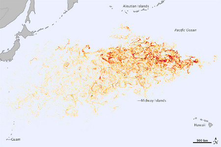 Amikor 2011 márciusában a hatalmas japán földrengést követő szökőár elérte a szigeteket, a becslések szerint 5 millió tonna törmelék került az óceánba. Ezek egy jelentős része az áramlások hátán már félúton lehet Észak-Amerika felé.