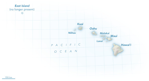 Az eltűnt East Island helye a Hawaii-szigetektől északnyugatra. (Kép: NASA Earth Observatory)