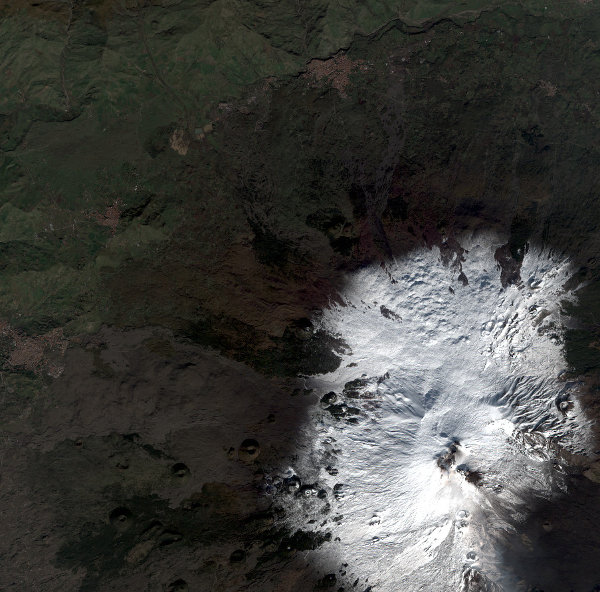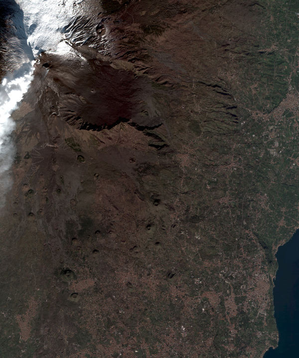 A Pléiades-1B műhold fél méteres felbontású felvételén a szicíliai vulkán decemberi kitörése.