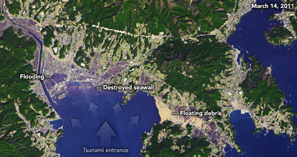 A NASA EO képgalériája a 2011-es Tóhoku-földrengés okozta pusztításról