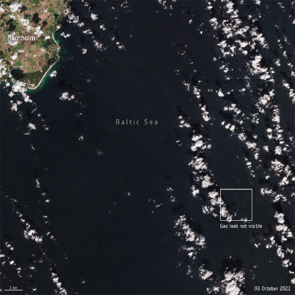 A Copernicus program saját radaros műholdja, a Sentinel-1A szeptember 24-én repült el a terület fölött és még nem látott semmi zavart a tengerfelszínen Bornholmtól délkeletre.