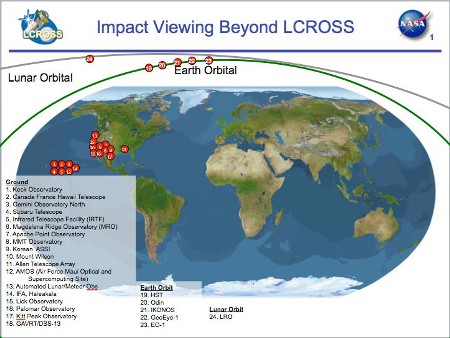 Az LCROSS becsapódását sok helyről figyelik majd. (Kép: NASA)