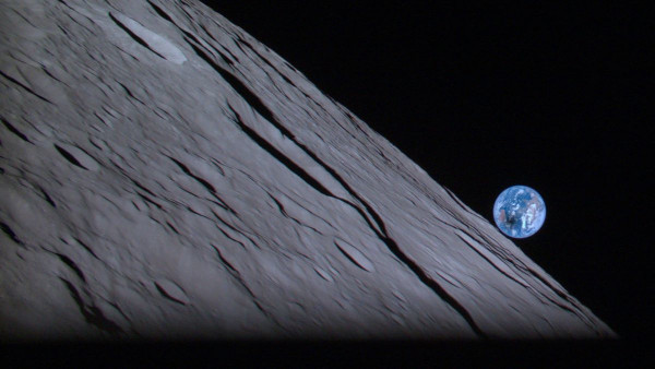 Az ispace Hakuto-R szondája éppen az április 20-i napfogyatkozás idején fényképezte le a teleföldet. A napfogyatkozás sávja az India- és a Csendes-óceán területén mozgott. A képen a Földön jobbra van észak, az árnyék foltja Ausztráliától északra látható. (Kép: ispace)