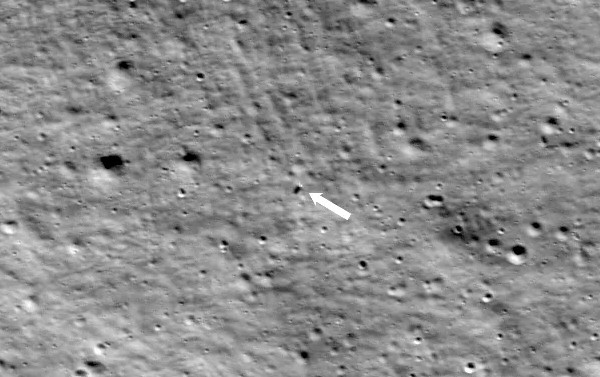 A Hold körül keringő amerikai Lunar Reconnaissance Orbiter űrszonda friss képén megtalálták az égitest felszínére leszállt Nova-C egységet. (Kép: NASA/GSFC/Arizona State University)
