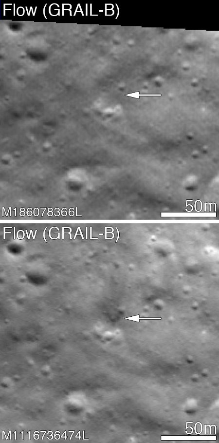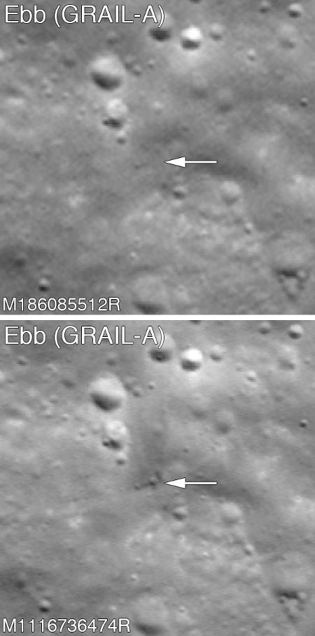 A NASA GRAIL (Gravity Recovery and Interior Laboratory) programjának végén a Hold gravitációs terét minden eddiginél pontosabban feltérképező két űrszonda – pályamagasságuk folyamatos csökkenése következtében, de irányított módon – az égitestre zuhant. A becsapódás helye a Hold északi pólusának közelében volt. A 2012. december 17-én, mintegy fél perc különbséggel történt két eseményről az LRO idén januárban, majd február 28-án tudott megfelelő felvételt készíteni. A képeken – némi meglepetésre – egyértelműen azonosíthatók a mégoly kis átmérőjű (kb. 5 m-es), friss becsapódásnyomok, a korábban készült LRO-felvételekkel való összehasonlítás után.