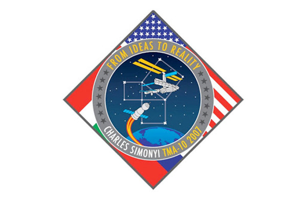 Charles Simonyi első repülésének emblémája. A rajta szereplő lobogókról írja a Charles in Space oldalon: az amerikai lobogó jelenti azt, hogy én amerikai vagyok. A piros-fehér-zöld színek azt, hogy Magyarországon születtem és ott nőttem fel. Az orosz lobogó pedig azt jelképezi, hogy Szojuz űrhajón juthattam el a világűrbe
