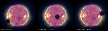 Február 25-én a napkutató STEREO űrszondák egyike (a Földtől lemaradó, a B jelű) a Hold árnyékába került.