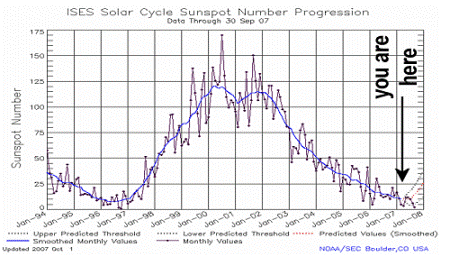 Korábban a jelenlegi ciklus végét a szakemberek március környékére jósolták, néhány hónapos hibával. A jóslatok abban megoszlanak, hogy az előttünk álló ciklus viszonylag nyugodt vagy éppen heves lesz-e. Ez egyáltalán nem mindegy, hiszen még soha nem hagyatkoztunk ilyen mértékben a Föld körül keringő űreszközeinkre – például a távközlési és navigációs mesterséges holdakra. Működésükre a naptevékenység által befolyásolt űridőjárás jelentős hatással van. A naptevékenység jelenlegi minimuma 2011-2012 körül vált majd maximumra.
