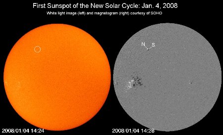 Az első megváltozott polaritású napfolt a csillag magas, 30°-os északi szélessége környékén bukkant fel, 2008. január 4-én. A polaritás változása azt jelenti, hogy a foltcsoport vezető (vagyis a keringés irányába eső) és követő részének mágneses polaritása felcserélődik az előző ciklus foltjaira jellemző sorrendhez képest.