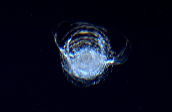 Az ISS Cupola moduljának ablakán keletkezett 7 mm-es sérülést a számítások szerint egy néhány mikrométer nagyságrendjébe eső szemcse becsapódása hozta létre. (Kép: ESA / NASA)
