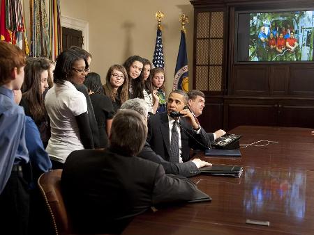 Obama a jelen és a jövő űrhajósai között kérdéseket tolmácsol. Ki tudja, mennyit profitál majd az amerikai űrhajózás a döntéséből. (Képek: NASA)