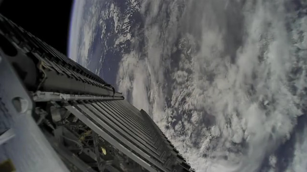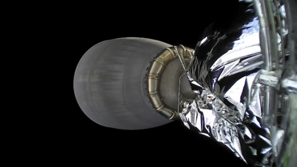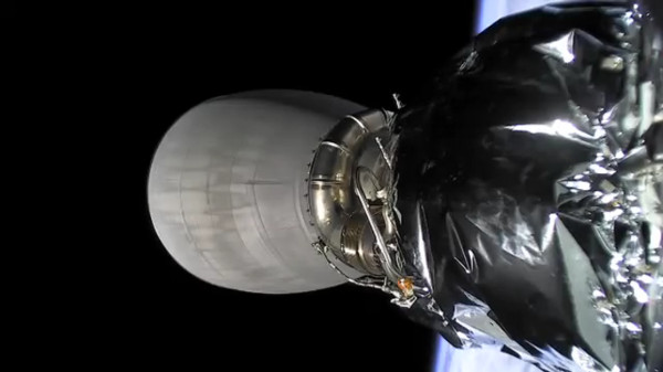 Négy kamera képe váltakozik fölváltva, két kamera a rakéta már lekapcsolt második fokozatának hajtóművét mutatja: