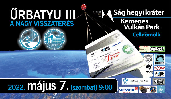 2022. május 7-én, szombaton, délelőtt 9 óra után indul az Űrbatyu III a Celldömölk melletti Ság-hegy kráteréből (Kemenes Vulkánpark). A pontos program:
