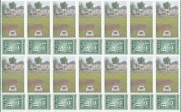 A nyereményként felajánlott két képeslap (fent), valamint az Űrfa képét ábrázoló megszemélyesített postabélyegeket tartalmazó ív egy részlete