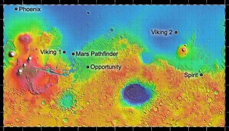 A Phoenix előtt a Marsra érkezett űrszondák sokkal alacsonyabb szélességeken vizsgálódtak/vizsgálódnak.