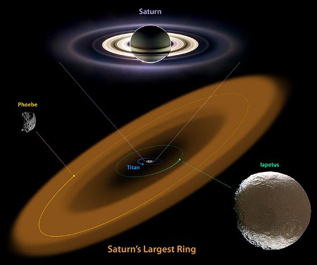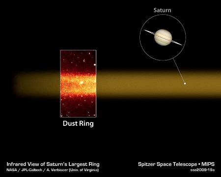 A NASA infravörös űrteleszkópjával kapott eredményeket a Nature tudományos hetilap mai száma közli. Az újonnan felfedezett gyűrű messze a legnagyobb az óriásbolygó ismert gyűrűihez képest. Nem rendelkezik éles határokkal; a Szaturnusztól nagyjából 6 millió km távolságban kezdődik és még mintegy 12 millió km-en át folytatódik. Érdekessége, hogy míg a többi gyűrű a bolygó egyenlítői síkjában található, ennek a hajlásszöge a fősíkhoz képest 27°. Benne kering a Phoebe nevű hold, amely a feltételezések szerint a gyűrű anyagának forrása. Az égitest minden bizonnyal nem a bolygóvbal együtt keletkezett, a Szaturnusz később fogta be.