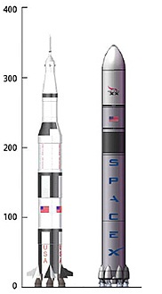 A Saturn-V és a Falcon-XX összehasonlítása. (Kép: SpaceX)