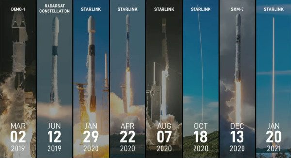 A biztonságra visszatérve, a 2016-os Amos-6 baleset óta egyhuzamban 112 sikeres Falcon-9 indítást hajtottak végre. Ami még figyelemre méltóbb, hogy eközben a SpaceX kísérletekbe kezdett a rakéta kiürült első fokozatának visszahozatalával kapcsolatban. Mára ez odáig vezetett, hogy az újbóli hasznosítás teljesen rutineljárássá vált: van olyan fokozat, amely már tíznél is többször repült. A SpaceX sosem vallott kudarcot az újra felhasznált fokozatokkal.