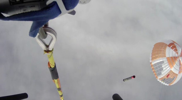Pillanatokkal az elkapást követően azonban a fokozatot eleresztették. A pilóta ugyanis rendellenes terhelést észlelt a korábbi teszteken tapasztaltakhoz képest. Így a biztonság kedvéért úgy döntött, hogy jobb lesz, ha inkább a tengerből, hajóra emelik majd ki a fokozatot, ahogy az a korábbi kísérleteknél is történt.