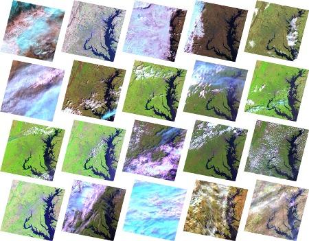 A kis képeken az amerikai főváros, Washington környéke látható különböző időpontokban, 2002 januárja és novembere között. Szinte mindegyik többé-kevésbé felhős időben készült. A Global Land Survey 2005 számára olyan számítógépes eljárást kellett kidolgozni, amely a 2004 és 2007 közötti évekből kiválogatja a leginkább felhőmentes felvételeket.