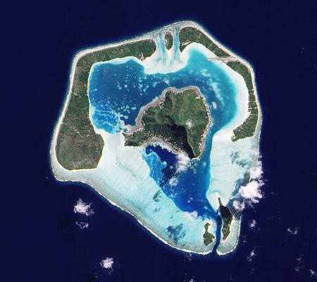 További komplikációt okozott a számos apró óceáni sziget, korallzátony felvétele a szárazföldeket tartalmazó adatbázisba. A képen a Tahiti közelében fekvő Maupiti-sziget látható. Mivel erről a helyről nem volt egyetlen használható Landsat-felvétel sem, a NASA EO-1 földmegfigyelő műholdjával készített képet kértek „kölcsön” a globális adatbázishoz.