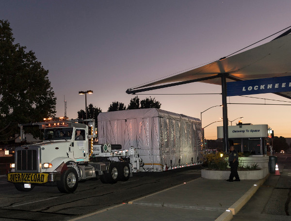 A WorldView-4-nek nem kellett sokat utaznia, július 24-én közúton szállították a kaliforniai Sunnyvale-ből, a Lockheed Martin telephelyéről a mindössze két órányi útra levő Vandenberg Légitámaszpontra. (Kép: Lockheed Martin)