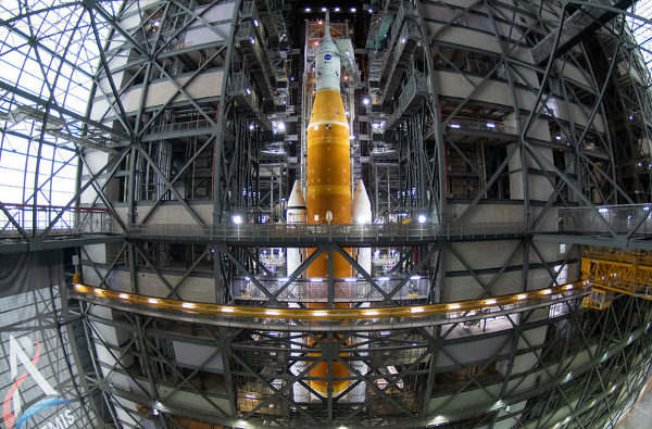 Az SLS holdrakéta több mint egy évtizedes fejlesztését politikai változások, műszaki problémák és költségtúllépések késleltették, de most már lassan valóban készen áll a bemutatkozó startjára. A technológiai megoldások és magas költségek azonban továbbra is viták tárgyává teszik az óriásrakétát. Nem sokkal a kiszállítását megelőzően például a NASA főfelügyelője, Paul Martin egy kongresszusi bizottság előtt arról beszélt, hogy hivatalának számításai szerint az SLS egy-egy indítására jutó költség eleinte nem kevesebb mint 4,1 milliárd dollár, ami hosszú távon nem fenntartható. (Ez az SLS és Orion gyártási költségeit és a földi kiszolgálást tartalmazza, de nem értendők bele a fejlesztés korábbi költségei!) Abban a korban, amikor a SpaceX és más társaságok több alkalommal is újra hasznosítható rakétákat fejlesztenek, egy ilyen drága egyszer használatos rakéta alkalmazása veszélybe sodorhatja a NASA céljait a Hold, és idővel a Mars emberes kutatására.