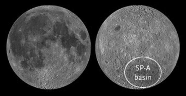 A Hold innenső (balra) és túlsó oldala a Lunar Reconnaissance Orbiter felvételei alapján. A Hold túlsó oldalán fedezték fel a Naprendszer legnagyobb becsapódásos medencéjét, a Déli-sarki – Aitken-medencét. (Kép: NASA / Arizona State Univ.)