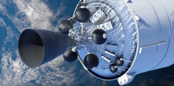 Fantáziarajz az Ariane–6 második fokozatához illesztett Vinci hajtóműről. (Kép: Safran)
