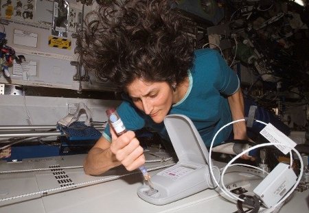 Mintavétel és elemzés az űrállomáson (Sunita Williams, 2007; kép: NASA)