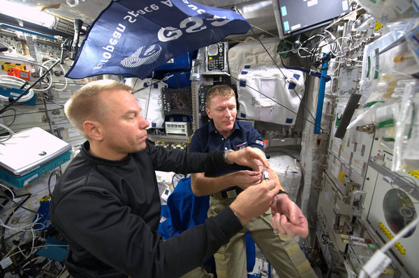 Az űrhajósok kiképzése arra is kiterjed, hogy ha mégsem sikerül megelőzni valamilyen betegség fellépését a fedélzeten, akkor elég tág határok között gyógykezelni tudják saját magukat, még kisebb műtétek elvégzésére is lehetőség van. Kapcsolódó cikkek: Kapcsolódó linkek:
