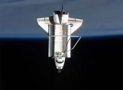 Az Endeavour távolodóban az égi támaszponttól. (Kép: NASA TV)