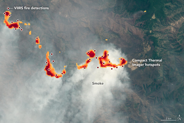Az elmúlt két évtizedben a tüzeket vizsgáló kutatók általában azokra a közepes (375–1000 méter) felbontású felvételekre támaszkodtak, amelyeket a MODIS (Moderate Resolution Imaging Spectroradiometer) és a VIIRS (Visible Infrared Imaging Radiometer Suite) szenzorokkal készítettek. A próbák során a CTI-vel a MODIS-hoz képest 190-szer, a VIIRS-nél pedig 20-szor jobb felbontást értek el. A bemutatott első két kép hátterét a Landsat–8 OLI (Operational Land Imager) műszerével természetes színekben készített felvétel adja. Erre másolták rá a CTI-vel 2019. november 1-jén az Ausztrália Új-Dél-Wales tartományában található Gondwana esőerdőben pusztító tüzekről készült felvételt. Az alsó képre rámásolták a VIIRS detektorral ugyanazon a napon végzett mérések eredményét is (piros négyzetek). A harmadik képen a CTI méréseivel együtt az ESA Sentinel–2 műholdjával ugyanakkor, ugyanarról a területről mért adatok is láthatók.