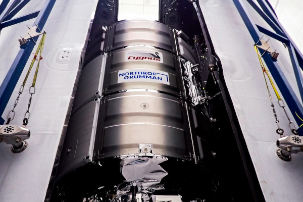 Záródik a rakéta orrburkolata a Cygnus NG-21 teherűrhajó indításra való előkészítése közben. A hagyományok szerint az űreszköz nevet is kapott, ez alkalommal a Challenger űrrepülőgép katasztrófájában életét vesztett Francis Scobee amerikai űrhajósét. (Kép: SpaceX)